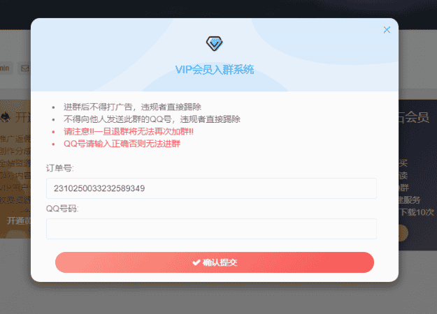 WordPress子比主题 添加VIP会员入群验证弹窗插件